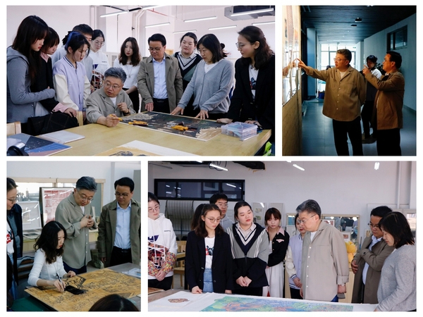 近日,江淮文化名家培育工程领军人才、安徽省美术家协会副主席师晶,安徽中医药大学编审、学术委员会成员、徽派版刻黄氏刻工第19代传人黄辉教授应邀到美术学院调研版画创作工作。美术学院党总支书记陈明海、副院长李李等陪同调研。