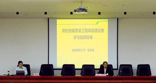 为加快学校教育教学内涵式发展,促进学校教学质量和整体实力有效提升,近日,学校邀请安徽省高校质量工程项目评审专家、安徽建筑大学程家福教授开展省级质量工程项目专题培训。培训由教务处副处长尹广富主持。