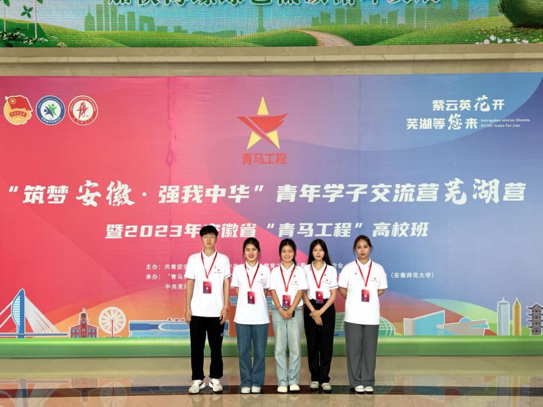 8月29日至9月1日,“筑梦安徽·强我中华”青年学子交流营开营暨2023年安徽省“青马工程”高校班开班在芜湖顺利举办,我校王雄略、任雅娟、回文佳、陈祖熙、开妍参加本次活动。