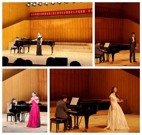 音乐会上,音乐学院音乐表演专业声乐方向的优秀学生们,用不同唱法演绎了中国艺术歌曲、西洋咏叹调、中国传统民歌等体裁的作品,展示了扎实的专业功底与音乐修养。