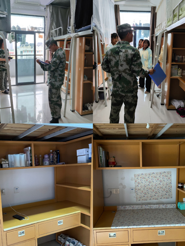 9月21日下午,校党委人民武装部牵头,联合教官、新生辅导员开展2023级新生军训内务卫生检查评比活动。