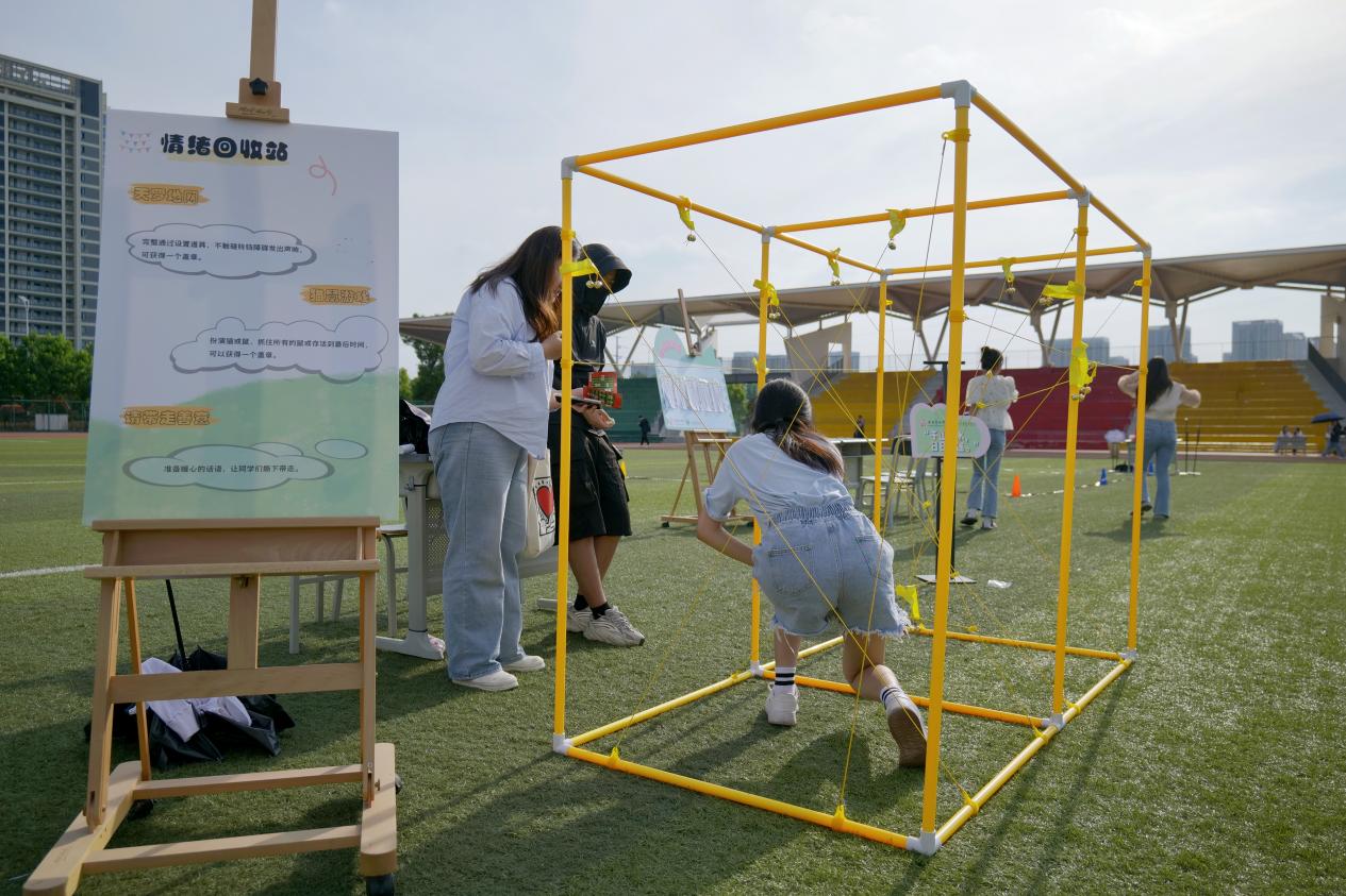 心理健康游园会,在游玩中释放压力。在以心“相愈”,“晴心”绽放——心理健康园游会上,传媒学院精心设计了20个心理健康游戏活动,分布在操场的静心手工区、动感挑战区、情绪回收站、益智桌游区等四个区域。五育元素汇聚青春风采,心理活动展现青年姿态。心理健康园游会不仅是一次“体育”活动,更是一场心灵的旅行。