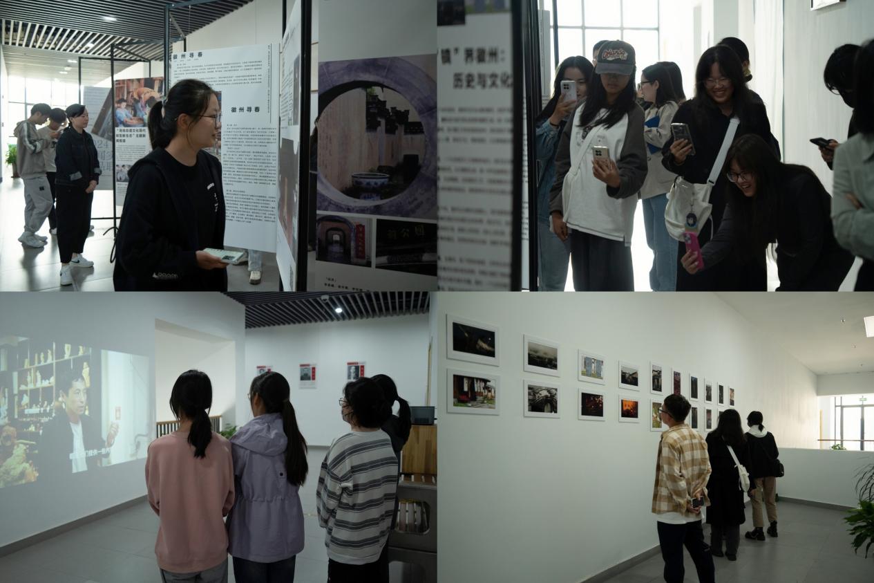 传媒学院新闻学教研室主任戚庆燕介绍,在实践周期间,新闻学专业的学生们聚焦于徽风皖韵及非遗文化主题,通过实地采访、深度报道、视频制作以及图文编排等一系列全面的新闻实践活动,创作出了众多优秀成果,这次作品展就是为学生们提供了一个展示自我和交流学习的平台。