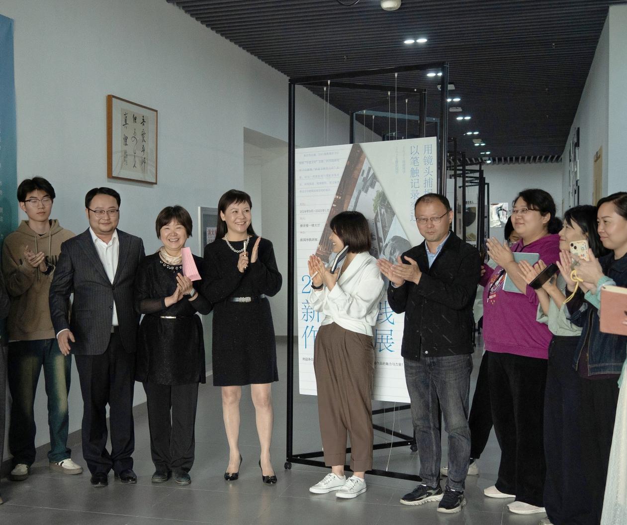 近日,传媒学院2021级、2022级新闻学专业学生新闻实践周作品联展开幕式在播音楼二楼大厅举行。传媒学院党总支书记、院长蔡正兰出席开幕式并宣布联展开幕。