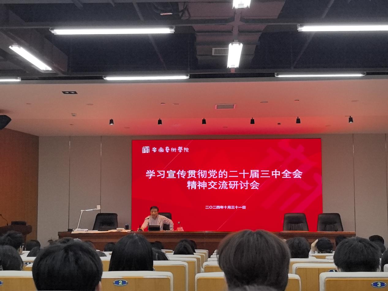 近日,学校学习宣传贯彻党的二十届三中全会精神交流研讨会在美术楼报告厅举行。校党委委员、副校长陈林就学习贯彻党的二十届三中全会精神,与师生们分享了感悟体会、进行了互动交流。