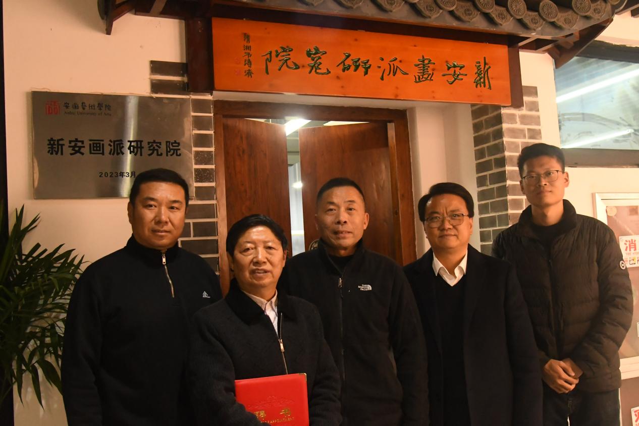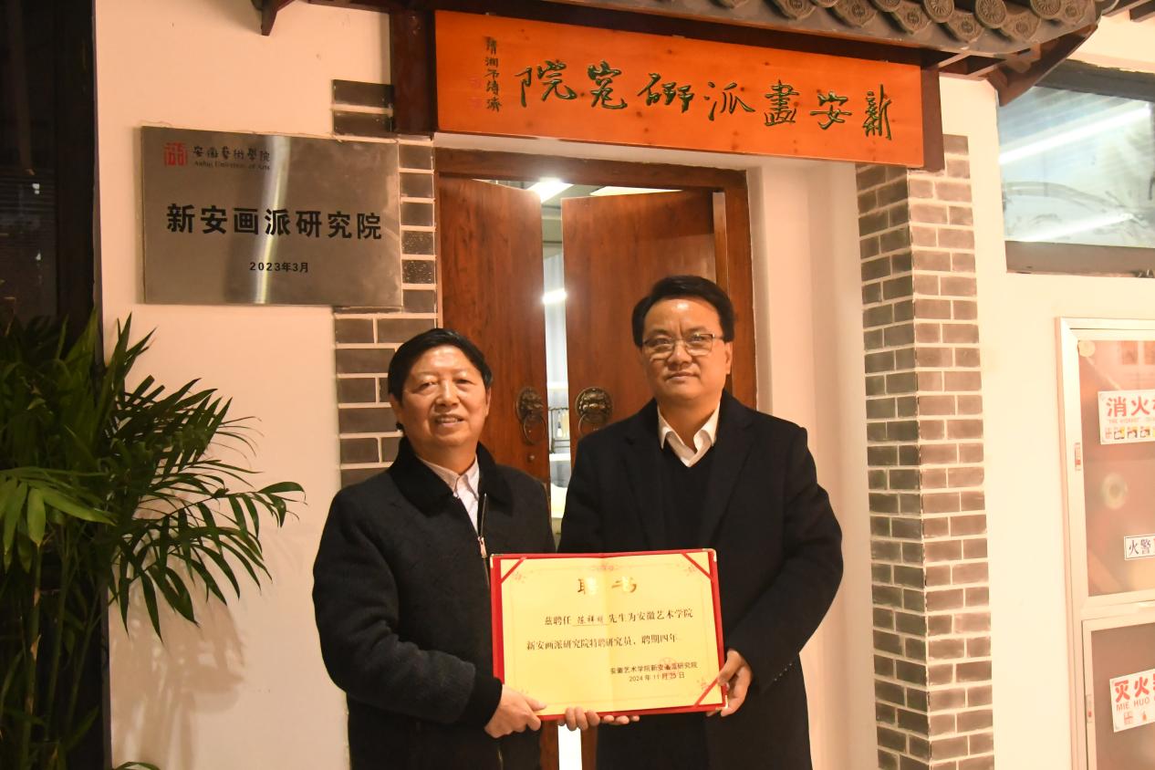 陈明海为陈祥明颁发新安画派研究院特聘研究员证书,并希望陈祥明教授持续关注和指导新安画派研究院的建设和发展,共同为发掘新安画派的当代价值和意义协商共议。