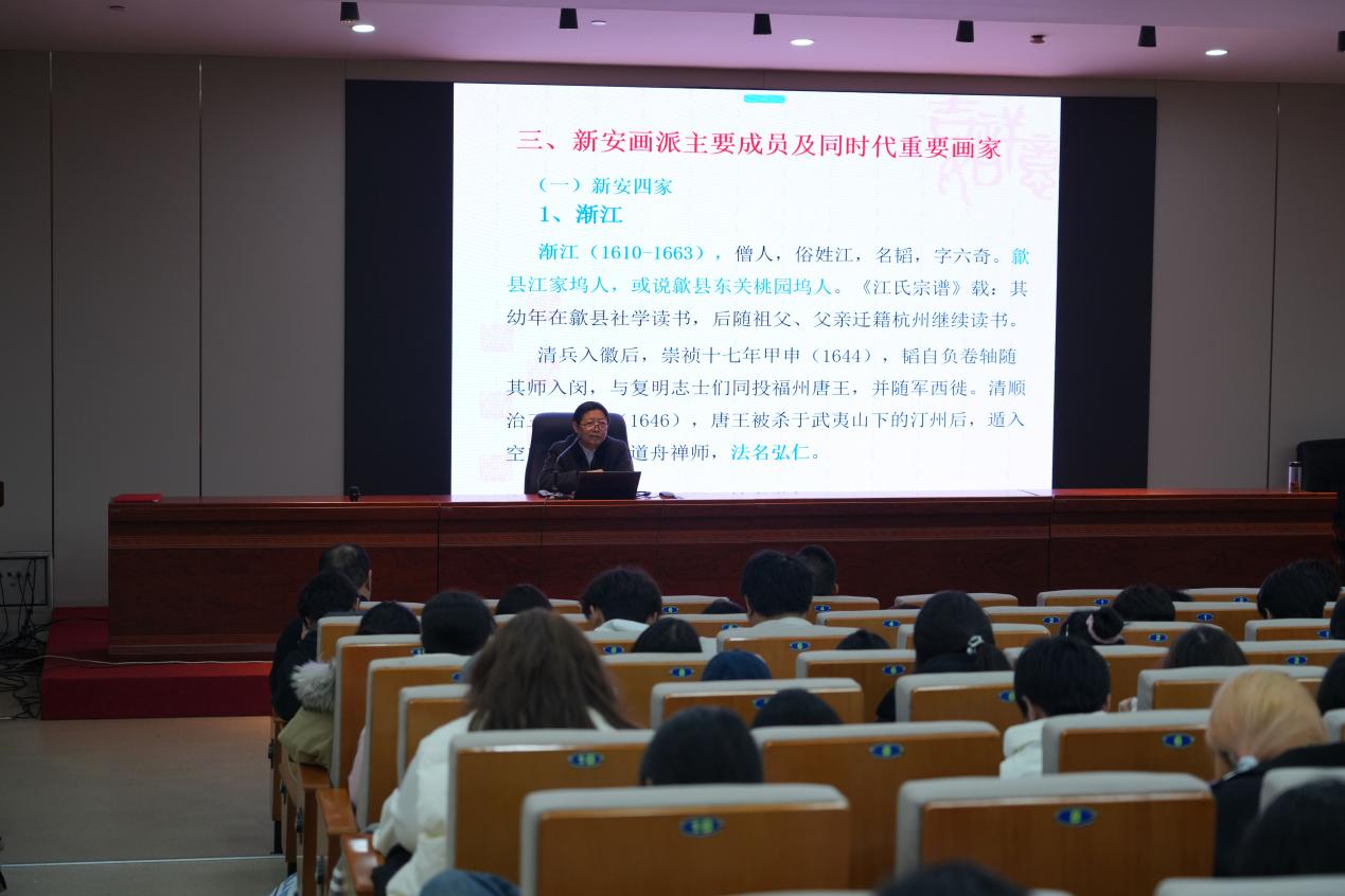 11月25日下午,新安画派大讲堂第二讲在美术楼一楼学术报告厅举行,陈祥明教授主讲题为《从渐江到黄宾虹--新安画派概观》的学术报告。我校原校长樊嘉禄教授、美术学院党总支书记陈明海及美术学院师生共同参加了讲座。讲座由新安画派研究院院长刘伟主持。