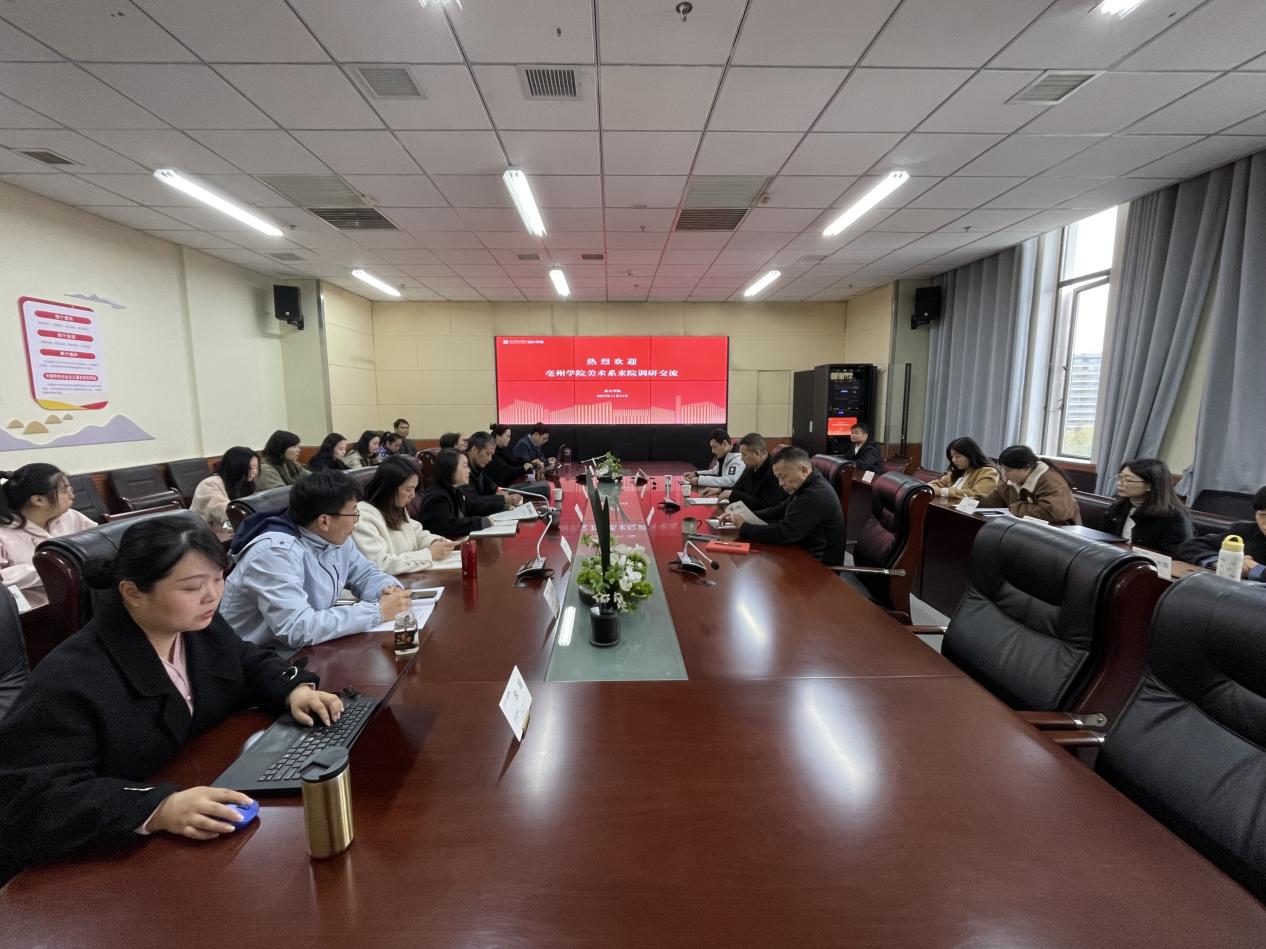 11月24日上午,亳州学院美术系副主任(主持)吕用印、办公室主任陈宁一行来设计学院调研交流。我校原校长、安徽非遗和乡村振兴设计研究院院长樊嘉禄教授,设计学院党总支书记俞璋凌、副院长撒后余参加座谈交流。会议由俞璋凌主持。