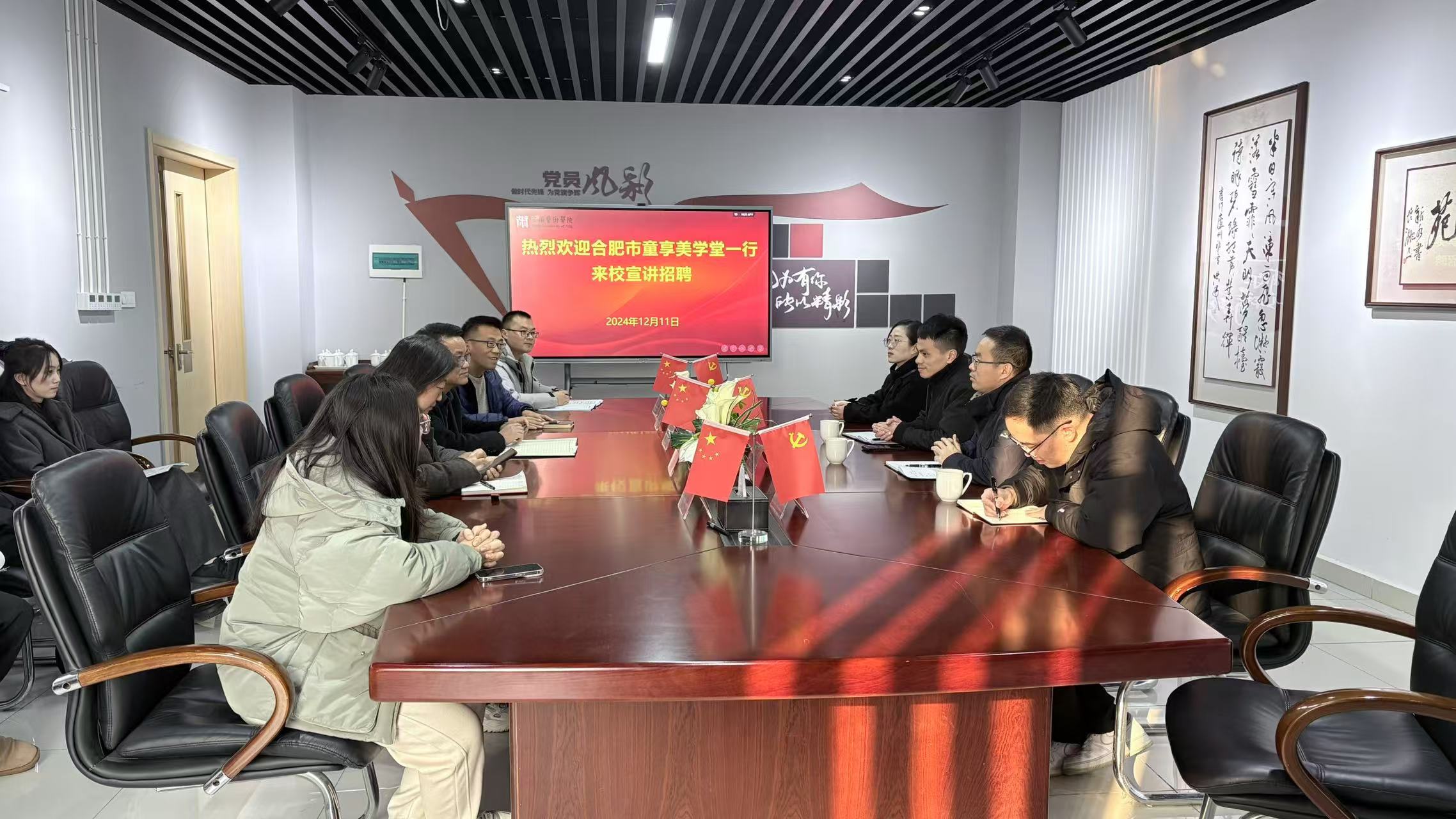 12月12日,合肥市童享美学堂艺术培训学校有限公司总经理陈奎一行来美术学院开展2025届毕业生招聘。