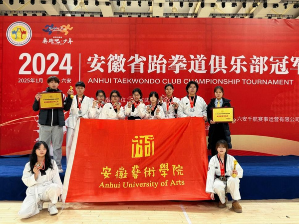 1月5日,安徽省跆拳道俱乐部冠军赛在舒城县体育馆顺利闭幕,我校跆拳道校队斩获7金7银4铜,并荣获道德风尚奖。传媒学院陈如玉、何晓宇获优秀运动员称号。
