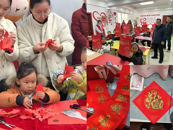 “千门万户曈曈日,总把新桃换旧符。”设计学院的学生们返乡后的第一课,便是和家人一起用非遗技艺装点新春。同学们将设计美学融入传统“福字”,用剪刀在红纸上走出新纹样,增添了春节的喜庆气氛。许多同学化身小老师,引导可爱的小朋友们同剪一幅窗花,让非遗传承变得具体可触。一幅幅手写春联、一张张剪纸窗花,承载着皖地文化基因,既寓意着吉祥,更是最生动的非遗课堂。