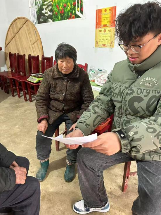 寒假期间,2023级视觉传达设计专业的田峰波参加了霍邱县周集镇组织的政务实践,负责乡村政策宣讲和档案管理工作,让他对基层工作有了全新且深刻的认识。