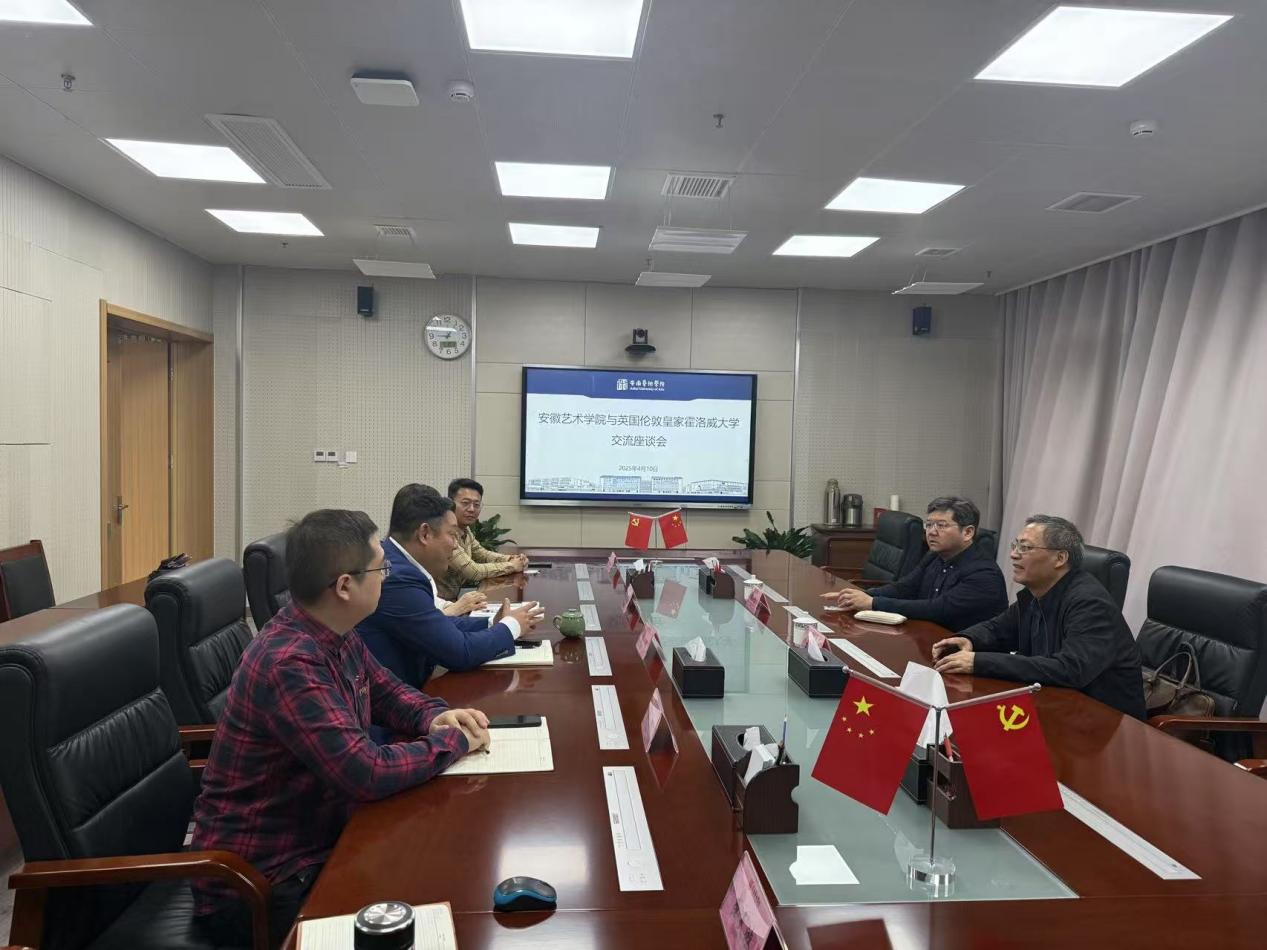 近日,英国伦敦大学皇家霍洛威学院表演和数字艺术学院副教授、国际化联席主任郭大为博士在安徽大学博士生导师、国务院特殊津贴获得者王天根教授陪同下到访我校,国际教育学院院长陈明、传媒学院院长蔡正兰接待了郭大为一行。