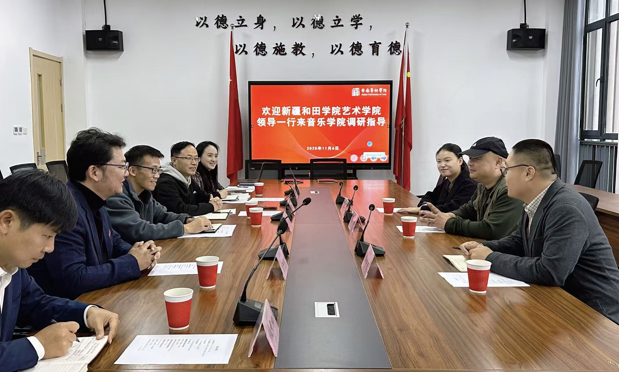 11月6日下午,新疆和田学院艺术学院副书记、副院长徐东昆一行到音乐学院调研交流。音乐学院党总支书记李卫国、校党委宣传部副部长尹广富出席会议。
