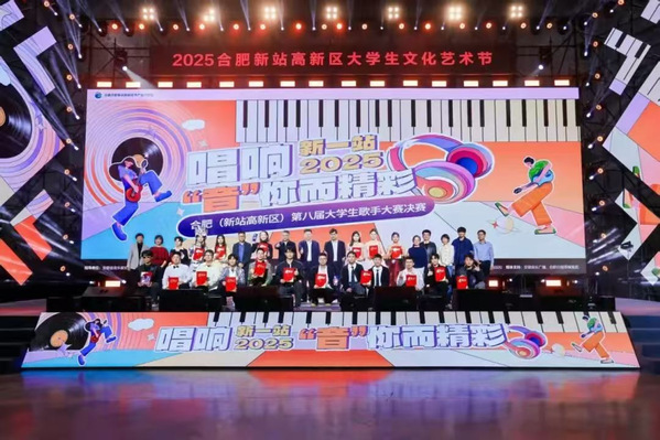 近日,合肥新站高新区第八届大学生歌手大赛总决赛圆满落幕。经过多轮激烈角逐,音乐学院2025级声乐一班刘力维同学发挥出色,最终荣获大赛亚军,并同时斩获大赛“最佳人气奖”,充分展现了音乐学院学生扎实的专业基础和良好的舞台风采。