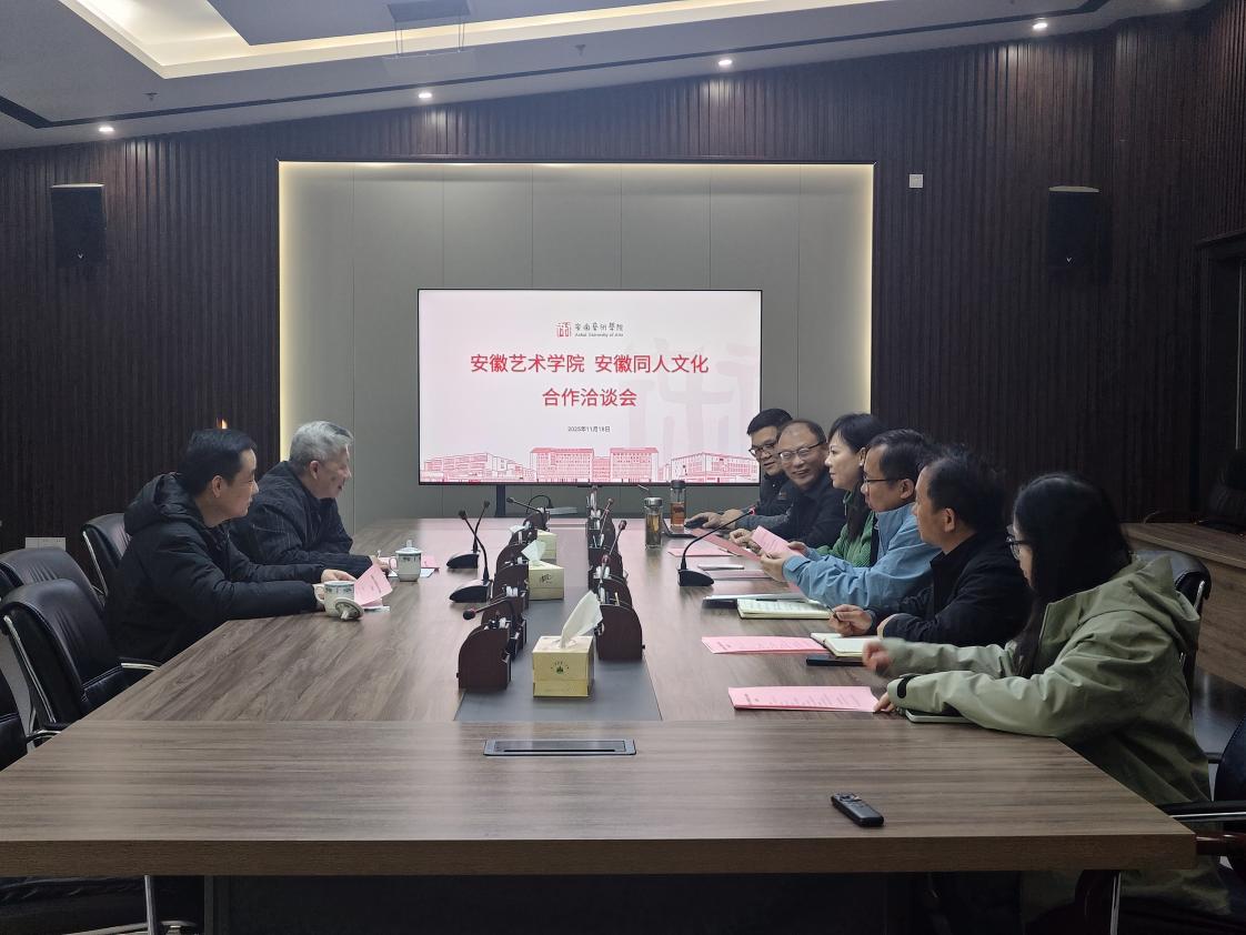 11月18日上午,安徽动漫协会会长吴铭东、安徽同人文化传播有限公司副总经理倪自强一行来我校共商产教合作项目。交流座谈会在传媒学院525会议室举行,传媒学院院长蔡正兰主持会议。艺术创新与实践中心主任、设计学院院长刘勇,传媒学院副院长刘涛等与同人文化围绕深化校企合作、推动产教融合进行了深入交流。
