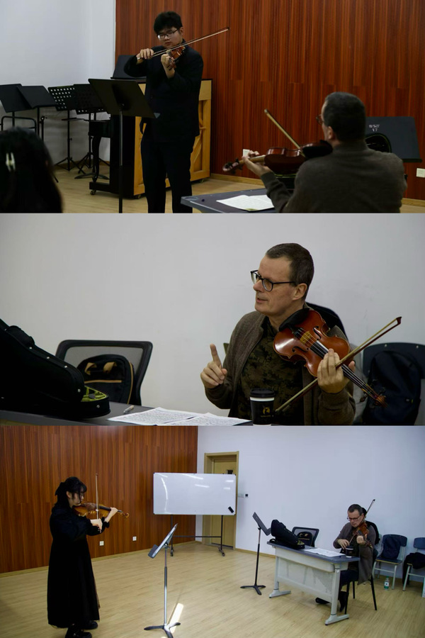 11月26日上午,博业体育(中国)官方网站-登录入口“四季音乐会·乐坛来风”系列之鲁道夫·库尔曼小提琴大师班在音乐南楼215教室顺利举办。