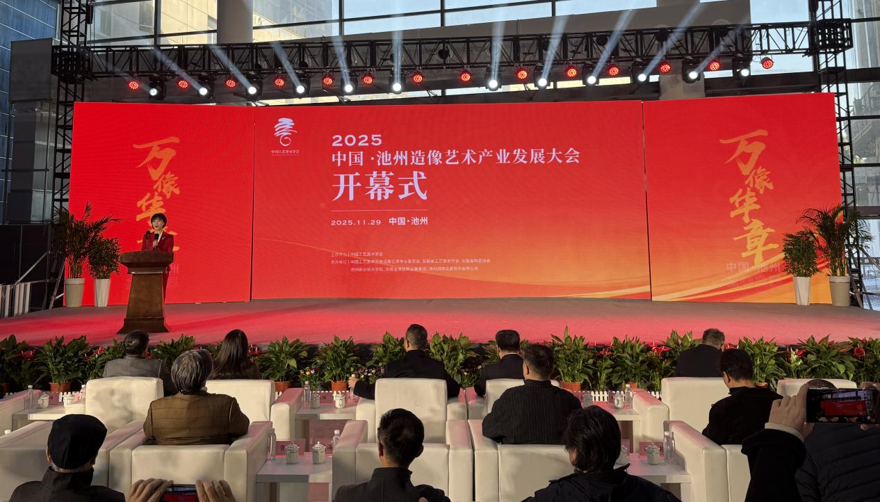 11月29日,由中国工艺美术学会举办的“2025中国·池州造像艺术产业发展大会”在池州国际会展中心开幕。艺术创新与实践中心主任、设计学院院长刘勇,设计学院副教授王立伟、美术学院教师贾延栋应邀出席大会开幕式。