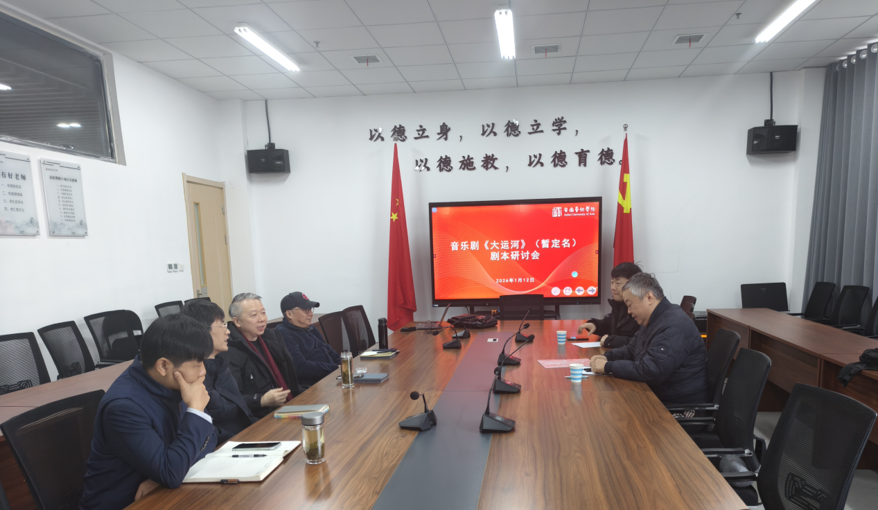 1月12日,音乐学院开展大运河主题音乐剧剧本研讨会,邀请江苏省话剧院知名导演邵梁莅临指导。会议由音乐学院院长李伟主持,音乐学院副院长郭强、学校特聘教授罗可曼及音乐剧主创团队参加。