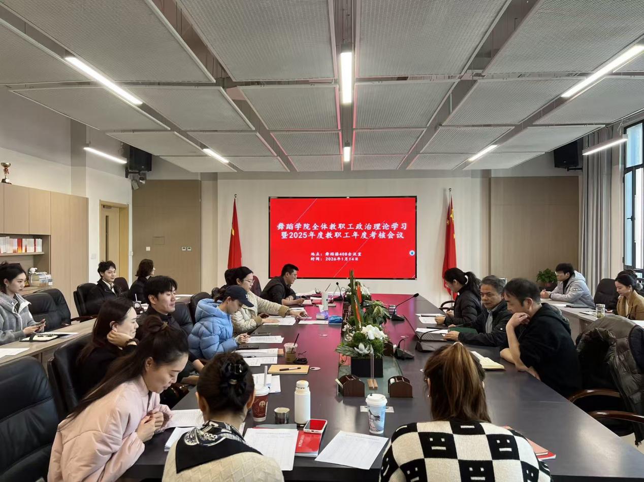 舞蹈学院近日开展全体教职工政治理论学习暨2025年度教职工年度考核。会议由舞蹈学院党总支书记韩大国主持,全体教职工参会。