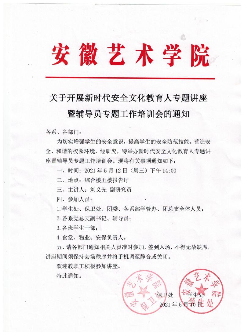 关于开展新时代安全文化教育人专题讲座暨辅导员专题工作培训会的通知