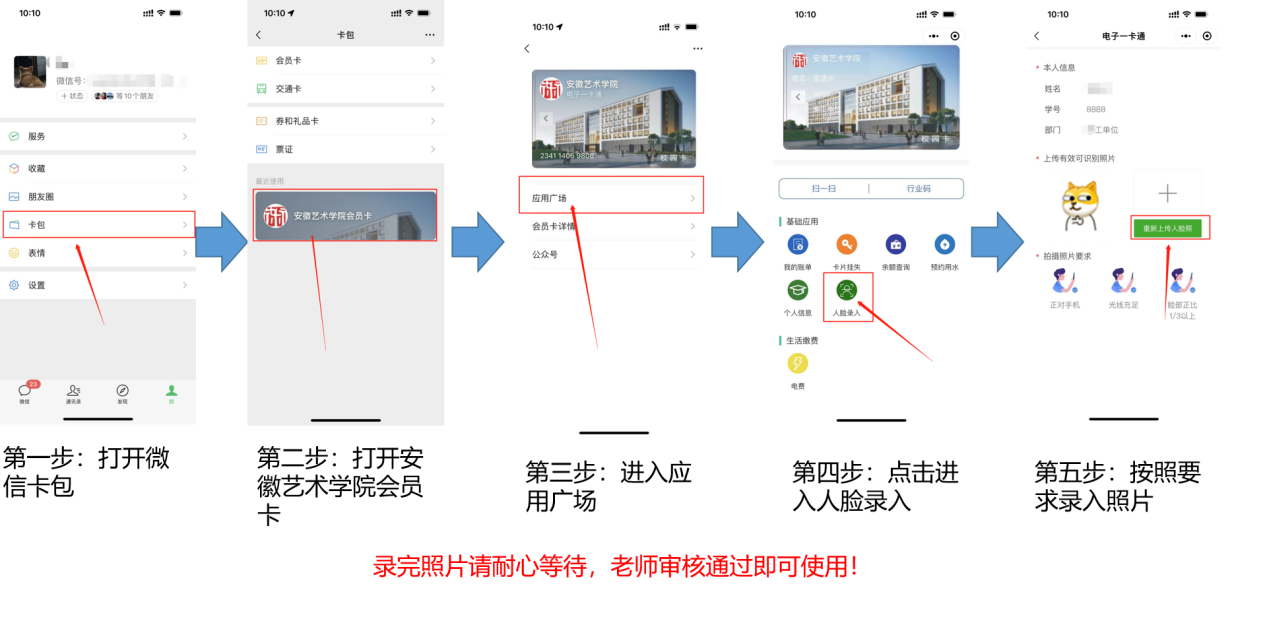 上传流程:卡包→博业体育(中国)官方网站-登录入口会员卡→应用广场→人脸录入→上传人脸照片。