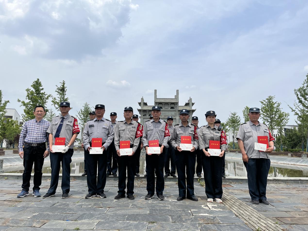 5月15日,保卫处陈雪峰处长为荣获“2021年度先进个人”的队员颁发荣誉证书和奖金。