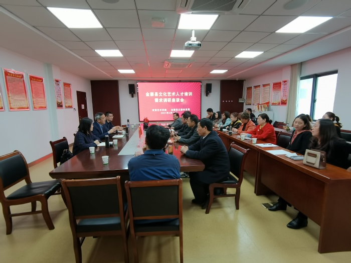 在金寨县教育局,副局长吕斌,局党组成员、教师发展中心主任卢万胜,人事科、教师发展中心负责人,中小学校长代表、幼儿园园长代表、艺术骨干教师代表等座谈了金寨县中小学幼儿园艺术教育及师资队伍的现状,在培训目标、培训内容、培训对象、培训形式等方面达成初步共识。