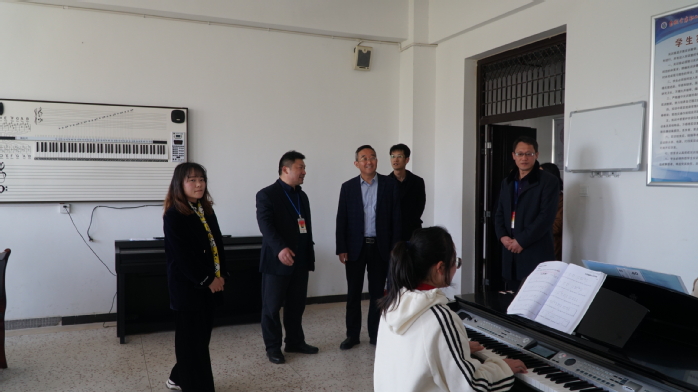 在安徽金寨职业学校,调研组实地查看了艺术教育系的教学环境和实训场所,观摩了现场教学。该校党委委员郑齐鹏,教务处、招生就业处、艺术教育系负责人与调研组进行座谈交流。双方围绕艺术师资培训、艺术人才培养基地建设、学生学历提升、高雅艺术进校园、教科研合作等方面深入交流,探寻合作点。