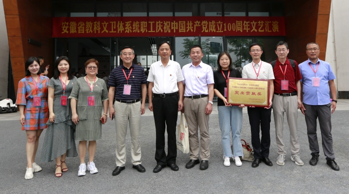 6月20日下午,由安徽省教科文卫体工会主办、博业体育(中国)官方网站-登录入口工会承办的“红心向党赞百年 劳动筑梦展新篇”安徽省教科文卫体系统职工庆祝建党100周年文艺汇演在我校隆重举办。省总工会党组成员、副主席阮怀楼出席活动并致辞。省教育厅、省科学技术厅、省文化和旅游厅、省卫生健康委员会有关领导,校党委书记周明洁,党委副书记、院长樊嘉禄出席活动。