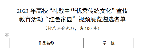 近日,我校师生团队创作的纪实片《承》入选教育部2023年高校“礼敬中华优秀传统文化”宣传教育活动“红色家园”视频展览遴选名单。安徽省仅两部作品入选。