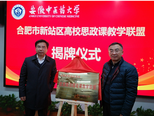 12月9日,合肥市新站区高校思想政治理论课教学联盟成立大会暨揭牌仪式在安徽中医药大学举行。安徽中医药大学党委书记王先俊、安徽省委教育工委省教育厅思政处处长王后林共同为联盟揭牌。经马院与部门商议,杨丽参加揭牌仪式。