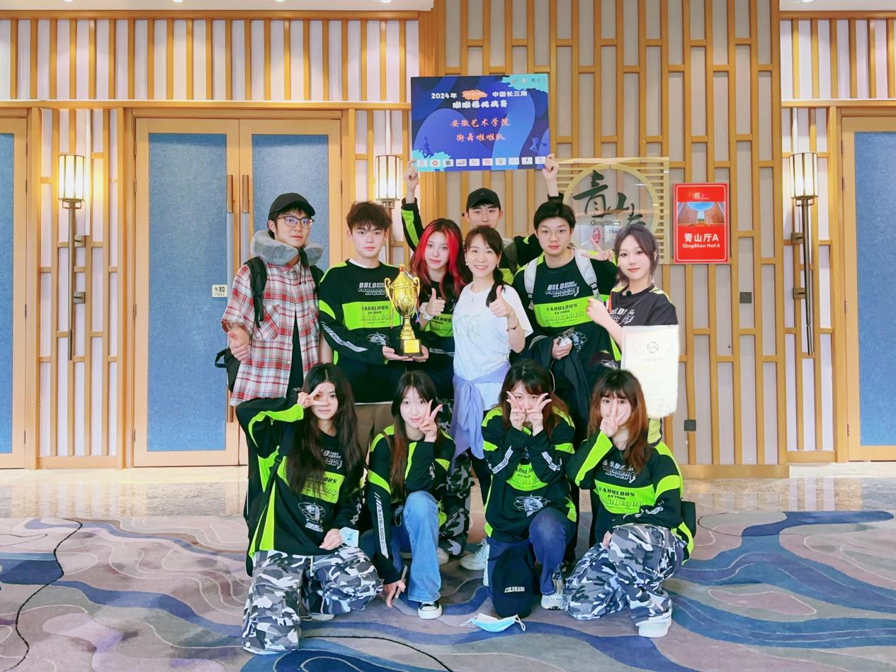 我校啦啦操俱乐部派出10名运动员,分别为传媒学院的蔡书葵、戴妍、钱飞竺,设计学院的刘豫皖、方佳妮、方佳茵,戏剧学院的张子妍、胡天宇、李鸣喆,音乐学院的董湘参加比赛。经过激烈角逐,街舞啦啦操获乙组自选动作项目全国冠军。此外,戏剧学院张子妍、胡天宇荣获啦啦操双人街舞乙组全国第四名,设计学院方佳妮、方佳茵荣获啦啦操双人街舞甲组(高水平组)全国第五名,传媒学院蔡书葵和音乐学院董湘荣获啦啦操双人街舞乙组全国第六名。
