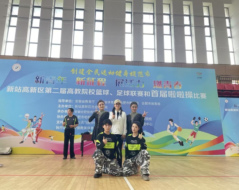 2024年10月18日上午,新站高新区第二届高教院校篮球、足球联赛和首届啦啦操比赛在安徽合肥技师学院拉开帷幕。本次比赛吸引高等院校近1200名运动员参赛。我校啦啦操俱乐部秉承着新青年、新征程、展活力、燃青春的思想宗旨,积极踊跃地报名参加了此次新站高新区首届高等院校啦啦操比赛。