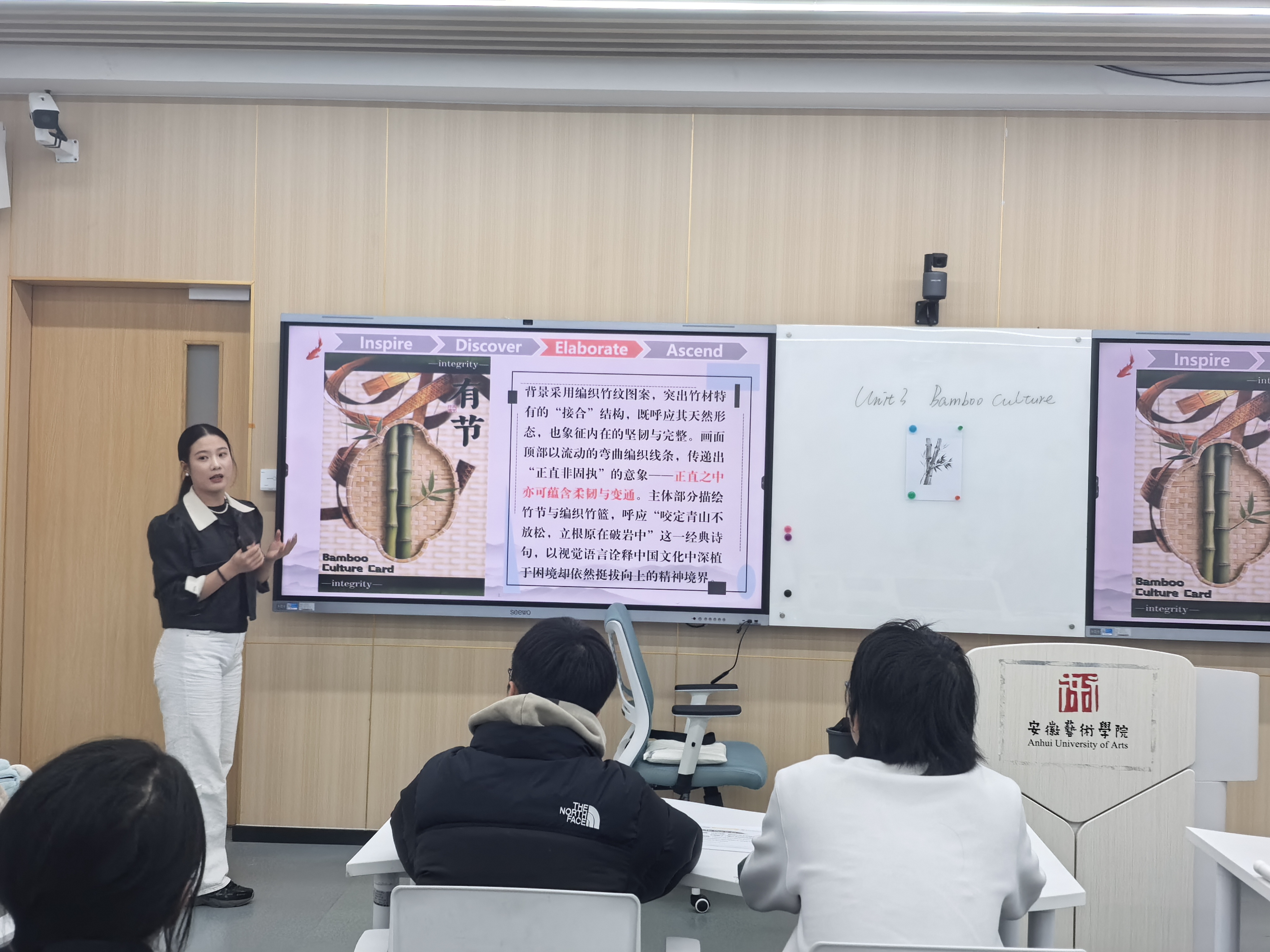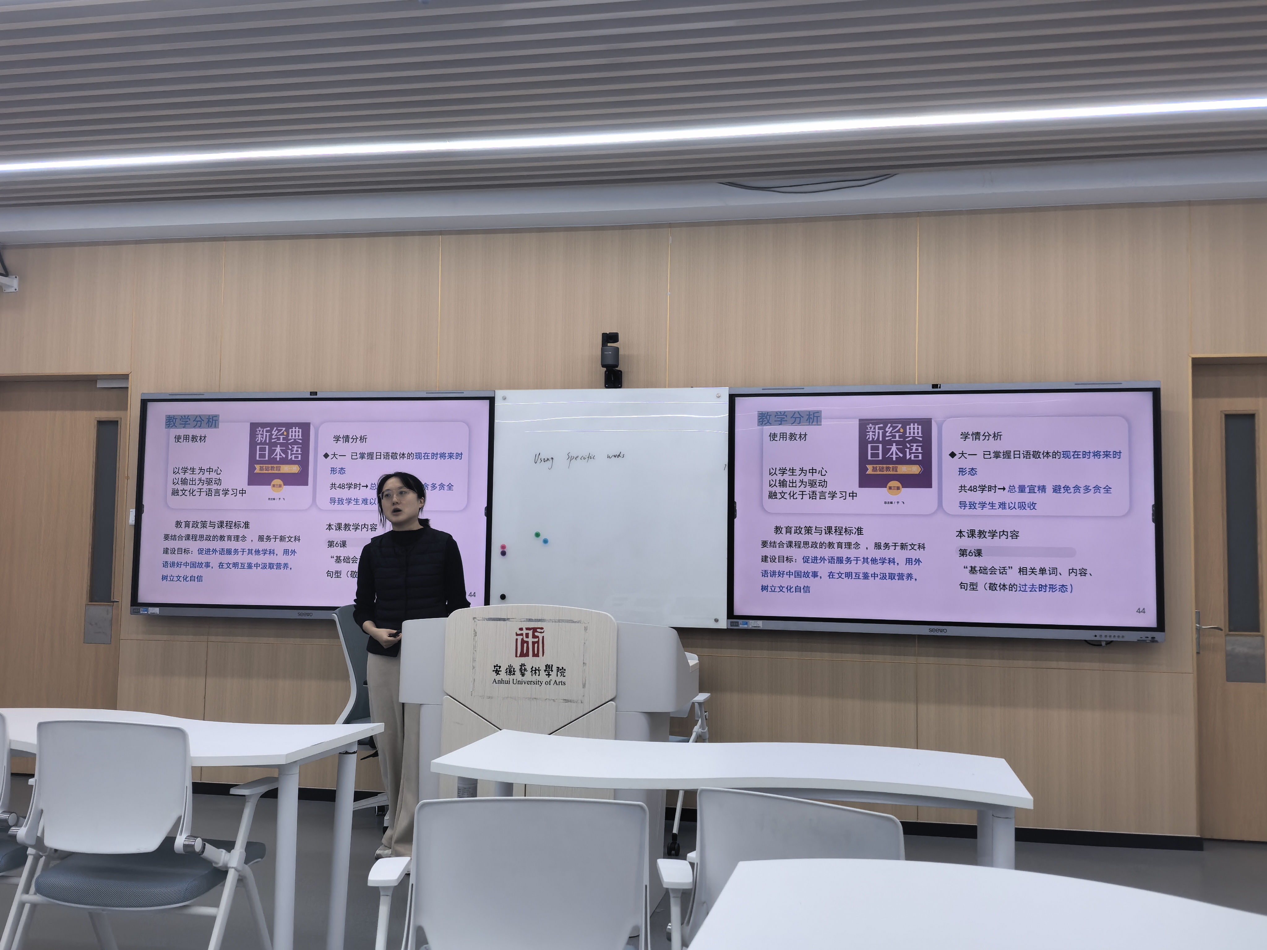 比赛按“说课 5 分钟 + 课堂教学 15 分钟”两个环节开展。教师们围绕外语教学重点设计课程,巧妙融入课程思政元素,将中国传统文化、用外语讲好中国故事等理念自然渗透进教学环节;另一方面灵活运用 AI 工具辅助教学,增强课堂趣味性与参与度。从价值引领到技术赋能,整体环节紧凑、亮点突出。评委从教学设计、说课、课堂教学中思政融入度及 AI 应用合理性等维度综合评分,最终评选出 2 名教师晋级部门青教赛。