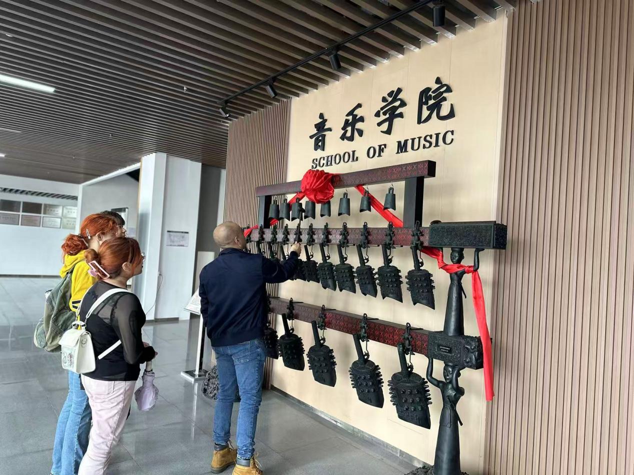 来自多所在肥高校的国际学生们在学校参观实验剧场、音乐厅、美术馆、版画工作室等教学场地,品徽式下午茶,看“麦积山石窟壁画艺术展”,感受中国传统文化的魅力和安徽艺术的风采。