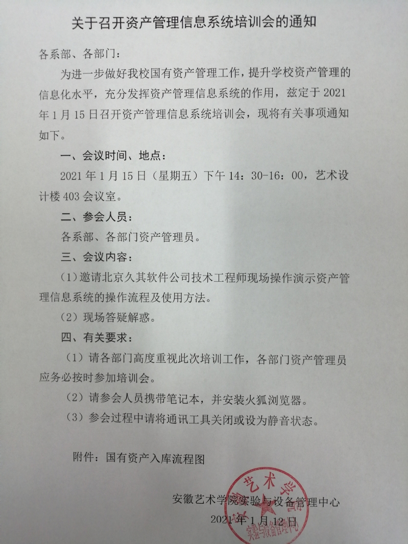 关于召开资产管理信息系统培训会的通知