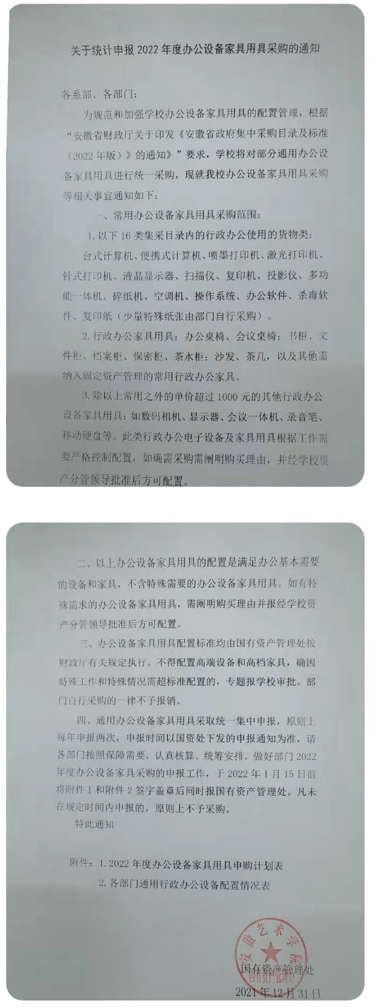 关于统计申报2022年度办公设备家具用具采购的通知