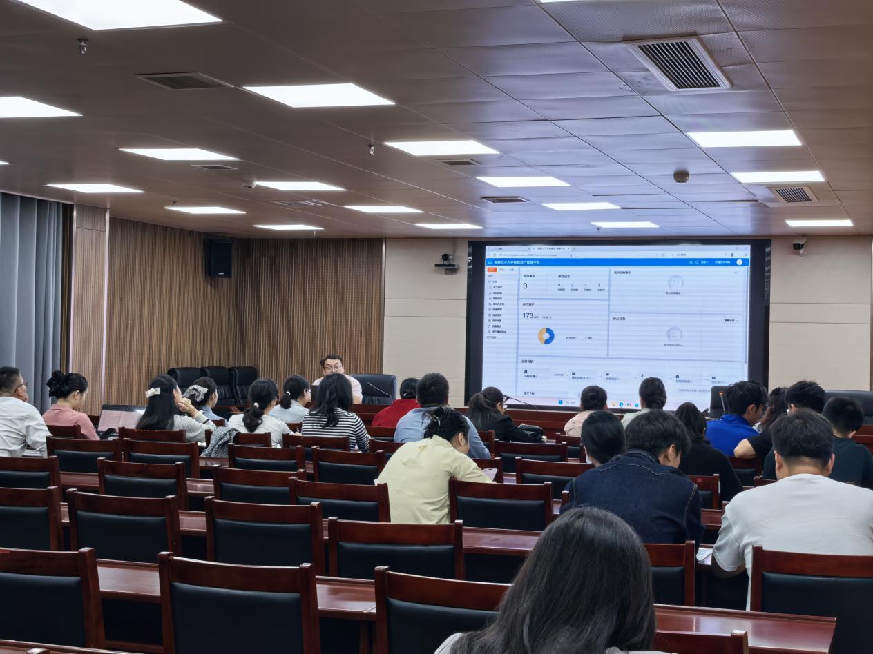 为有效提升管理效率与服务效能,国有资产管理处对原资产管理系统进行全面升级,为确保系统顺利切换,2025年9月25日,国有资产管理处组织专题培训会,副处长贺嘉主持会议并发表讲话。