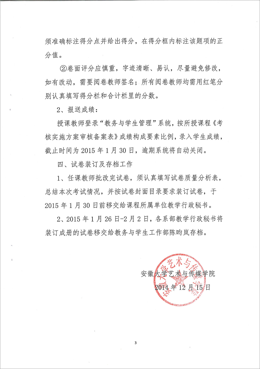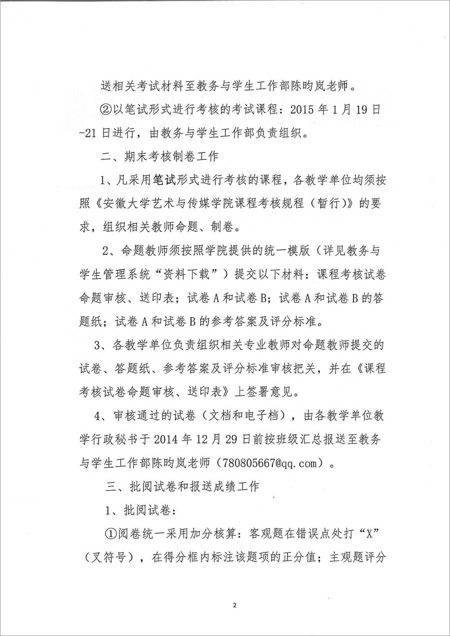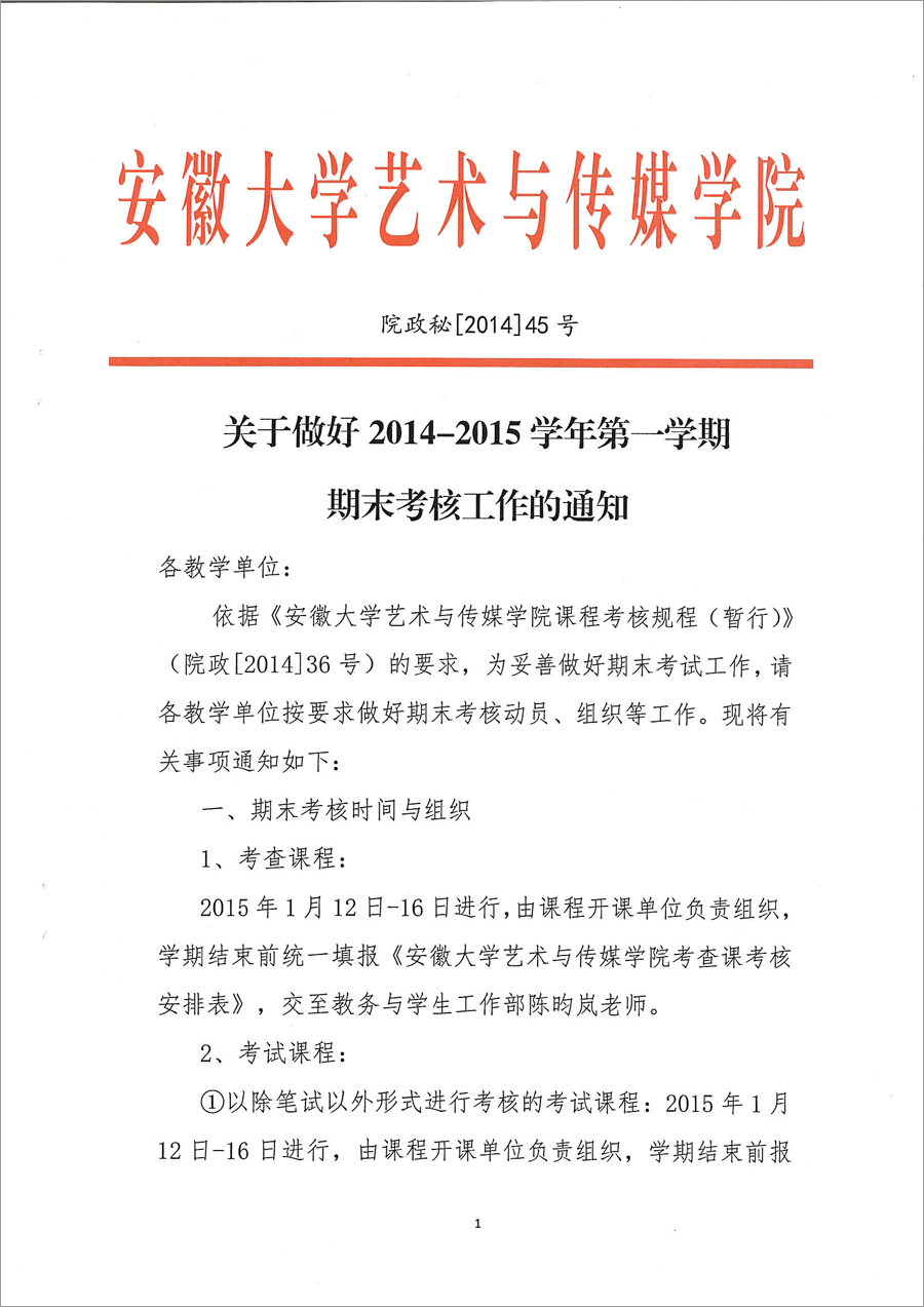 关于做好2014-2015学年第一学期期末考核工作的通知