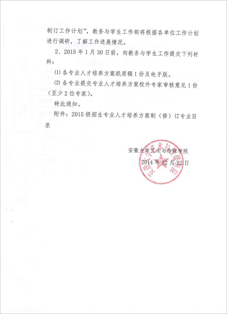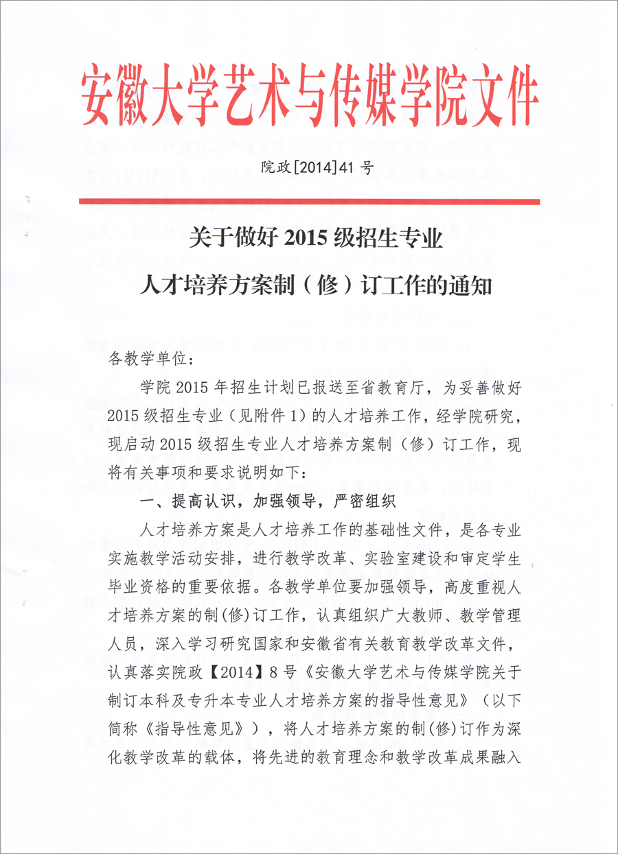 关于做好2015级招生专业人才培养方案制(修)订工作的通知