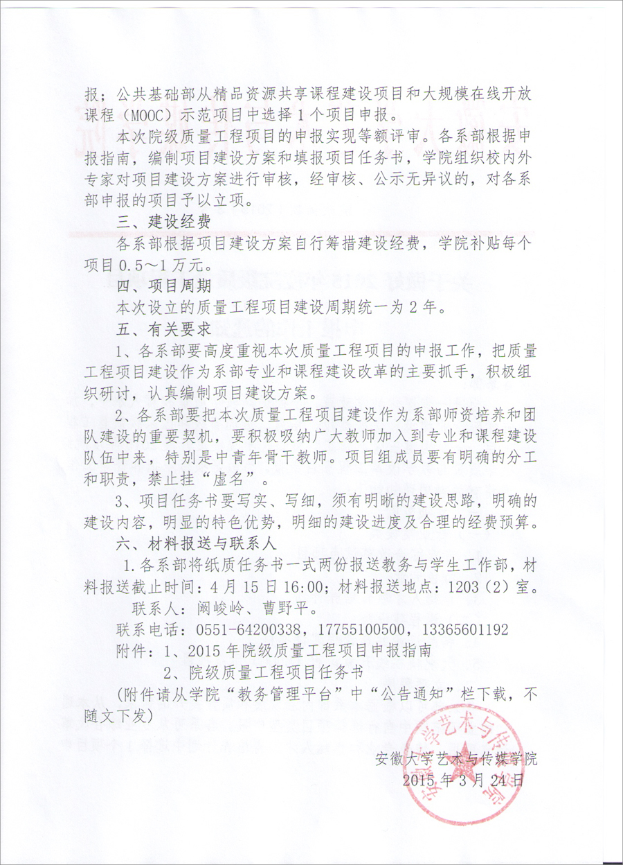 安徽大学艺术与传媒学院院级质量工程项目任务书.doc