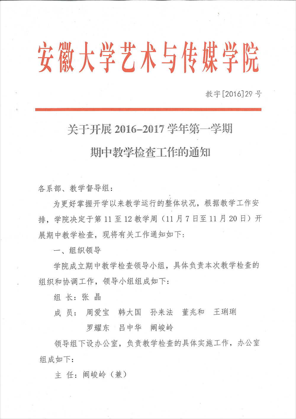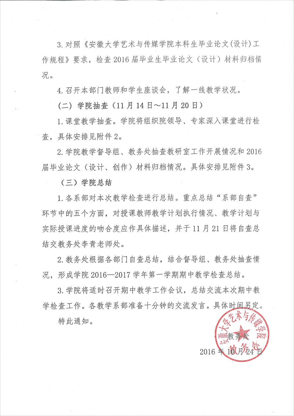 关于开展2016-2017学年第一学期期中教学检查工作的通知