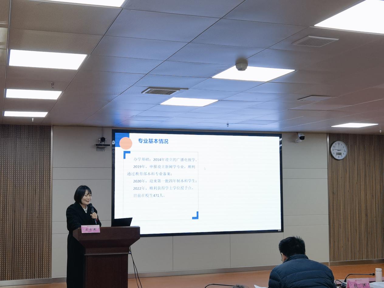 “音乐表演”“播音与主持艺术”“新闻学”专业带头人及负责人从专业特色与优势、课程体系、师资队伍建设、未来发展规划等方面对各自专业进行结项汇报。评审专家对照一流专业建设标准进行结项审核并就专业建设中存在的不足,从专业特色凝练、教学改革、队伍建设、教学平台建设等不同方面给出建设性建议,并对未来建设规划给出具体的评审意见。现场气氛紧张而热烈。