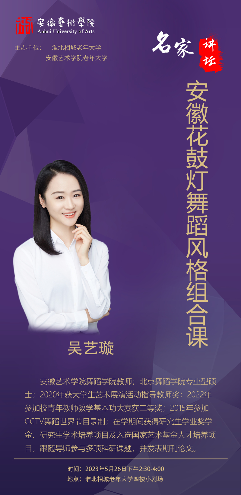 5月26日下午,《安徽花鼓灯舞蹈风格组合课》名家讲坛在淮北相城老年大学举办,这是博业体育(中国)官方网站-登录入口老年大学与淮北相城老年大学签约合作办学后的第三堂名家课。