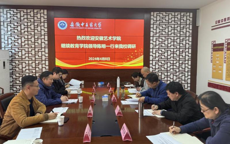 4月8日下午,继续教育学院(国际教育学院)院长陈明率学院全体教职工一行5人,赴安徽中医药大学继续教育学院开展调研工作,该校继续教育学院院长方正清、副院长章登飞出席调研。