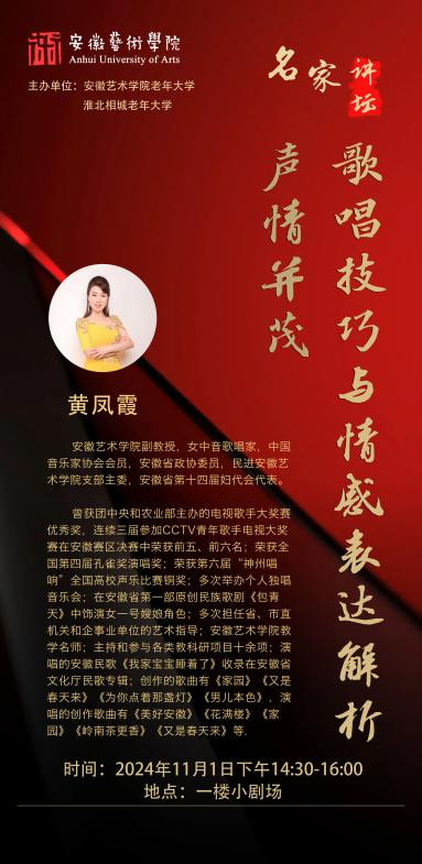 11月1日,博业体育(中国)官方网站-登录入口老年大学在淮北教学点开展了2024-2025学年第一学期的“名家讲坛”活动。我校黄凤霞教授以《声情并茂——歌唱技巧与情感表达解析》为主题,向老年学员们呈现了一场精彩的专题讲座。