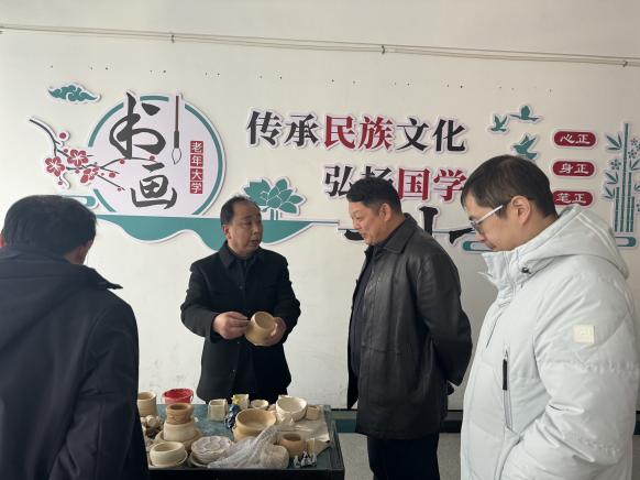 陈明一行首先参观了新站高新区老年大学古筝教室、合唱教室、八段锦教室、书画教室、乒乓球教室,了解师资、课程等基本情况。