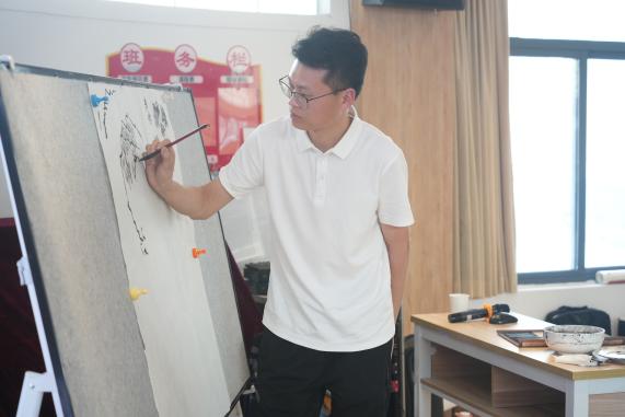葛亮以《溪山行旅图》为例,细致剖析了北宋山水画的构图特点、笔墨技法及人文精神。他指出宋代山水画讲究“远观其势,近观其质”,范宽笔下的山石雄浑厚重,皴法极具表现力等特点。在实践环节葛亮亲自示范《溪山行旅图》中山石的画法,演示了“积墨法”的运用技巧。