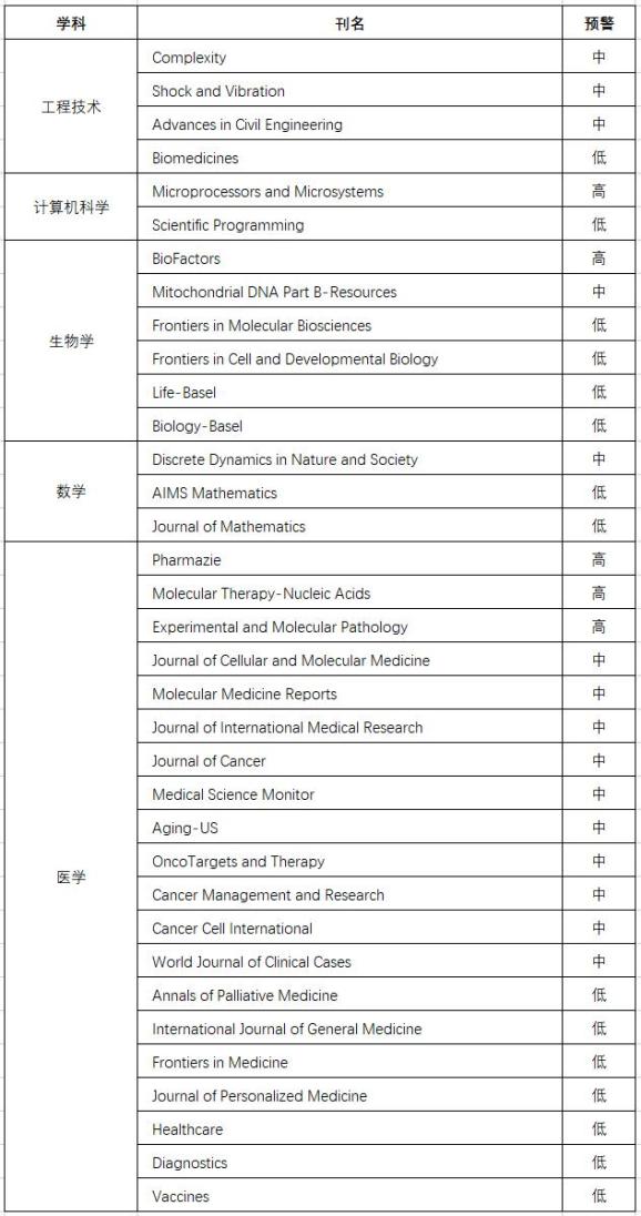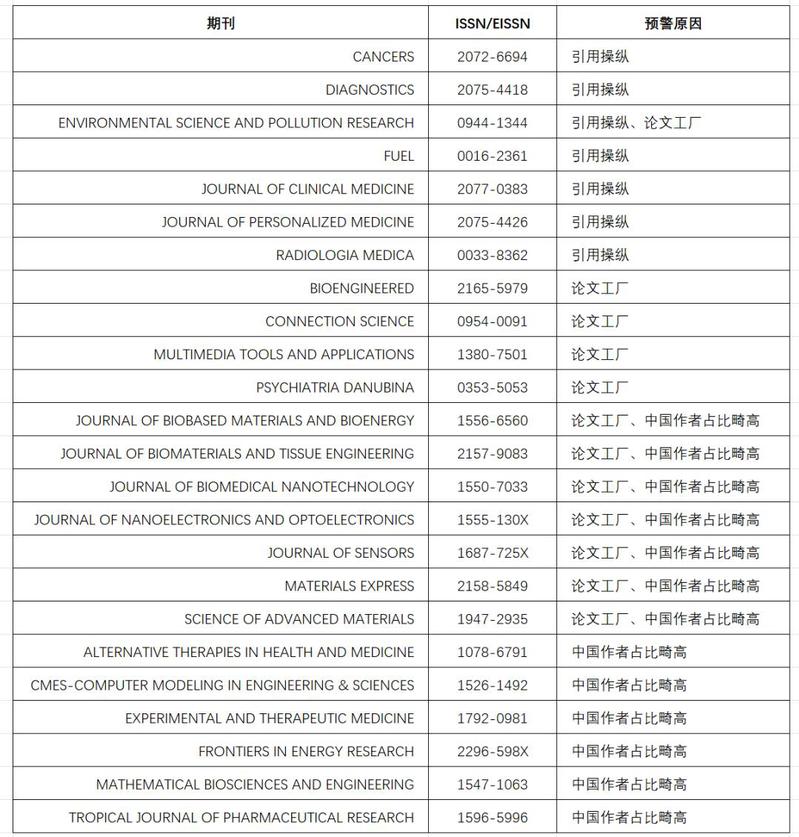2021年《国际期刊预警名单(试行)》: